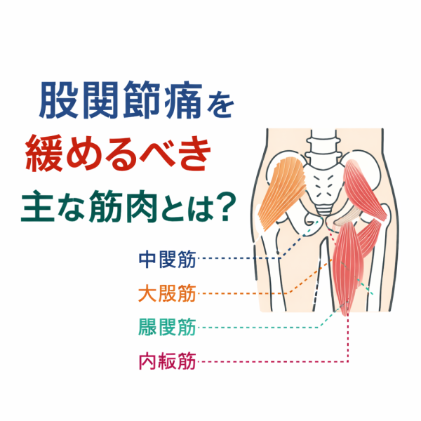 代表的なのは中殿筋・大殿筋・内転筋・腸腰筋です。これらは骨盤と太ももをつなぐ重要な筋肉で、歩行や立ち座りのたびに働いています。どこか一部が過緊張を起こすと、関節の動きがアンバランスになり、結果として違和感や痛みを感じやすくなると報告されています。