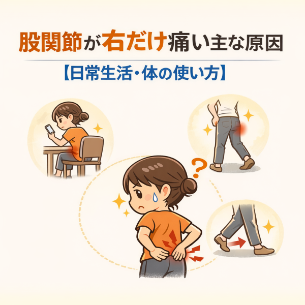股関節が右だけ痛い主な原因【日常生活・体の使い方】