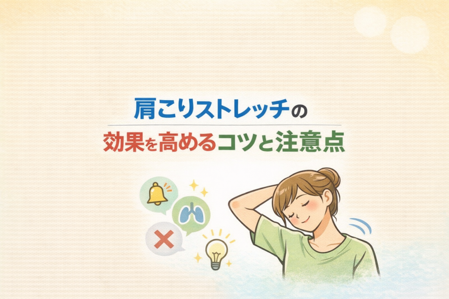 こうした小さな見直しが、肩こり対策の土台になると言われています。「ストレッチ+生活習慣」の組み合わせが大切、という考え方ですね。