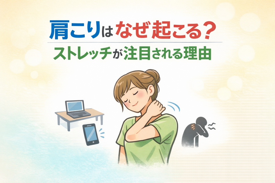 そこで注目されているのが肩こりストレッチです。ストレッチは、縮こまりやすい筋肉を自分で動かしながら伸ばすことで、血流や体のバランスを意識しやすい方法と言われています。
