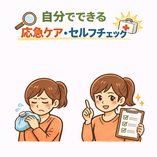 ただ、状態によっては自分でできる応急ケアやチェックで、痛みの悪化を防げると言われています。ここでは、来院前に試せるポイントを整理してお伝えします。