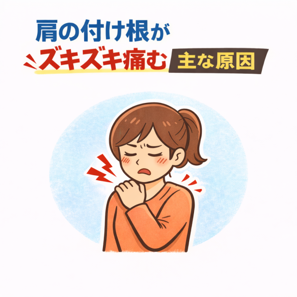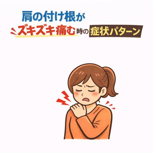 首や鎖骨周辺で神経が刺激されると、肩の付け根にズキズキした痛みやしびれが出ることがあります。