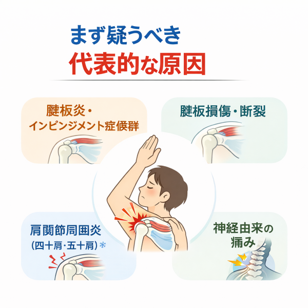 肩を上げた時の痛みには、いくつかの典型的な原因があります。自己判断が難しい症状も多いため、特徴を知っておくことが大切だと考えられています。