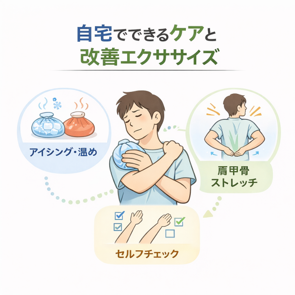 #セルフケア #肩甲骨ストレッチ #アイシング #温め #自宅ケア