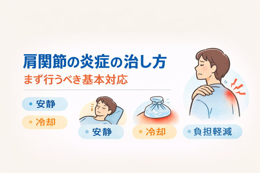 肩関節に炎症があるときは、まず負担を減らすことが大切だと言われています。無理に動かし続けると炎症が長引く可能性があるため、痛みが強い時期は安静を意識することがポイントになります。