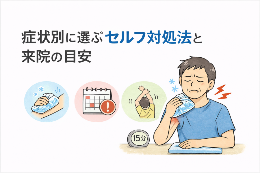 ただし、腕がほとんどあがらない、夜も眠れないほど痛い、しびれがあるといった場合は、自己ケアだけで様子を見るのは避けたほうがよいと言われています。整形外科での検査や触診を受けることで、状態がわかりやすくなります。