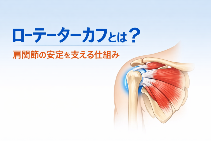 ローテーターカフとは、肩の奥深くに位置するインナーマッスル群の総称で、肩関節を安定させる重要な働きを持つ筋肉です。腕を動かすとき、骨同士がズレないように支える役割があるとされています。肩関節は体の中でも特に可動域が広く、そのぶん不安定になりやすい構造です。その不安定さを補っているのが、ローテーターカフだと言われています。