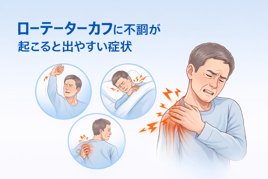 不調が続くと、夜間に肩がズキズキ痛む、横向きで眠れない、腕に力が入りにくいといった症状が出ることがあります。こうした状態は、日常生活の質を下げてしまう要因になります。