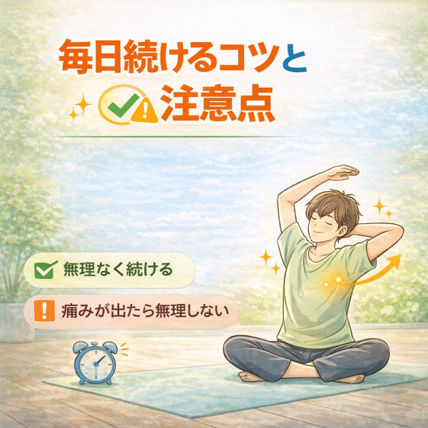 これ、かなり多い悩みです。実は、背中ストレッチは“やり方”より“続け方”のほうが大事だと言われています。無理に頑張るより、生活の中に自然に組み込むことが、結果的に体の変化を感じやすくするポイントになります。