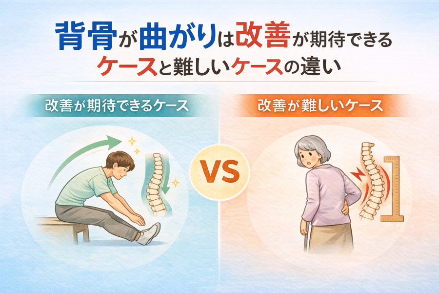 この違いを理解せずに「背骨が曲がった=もう元に戻らない」と決めつけてしまうと、必要以上に不安を感じてしまうこともあります。