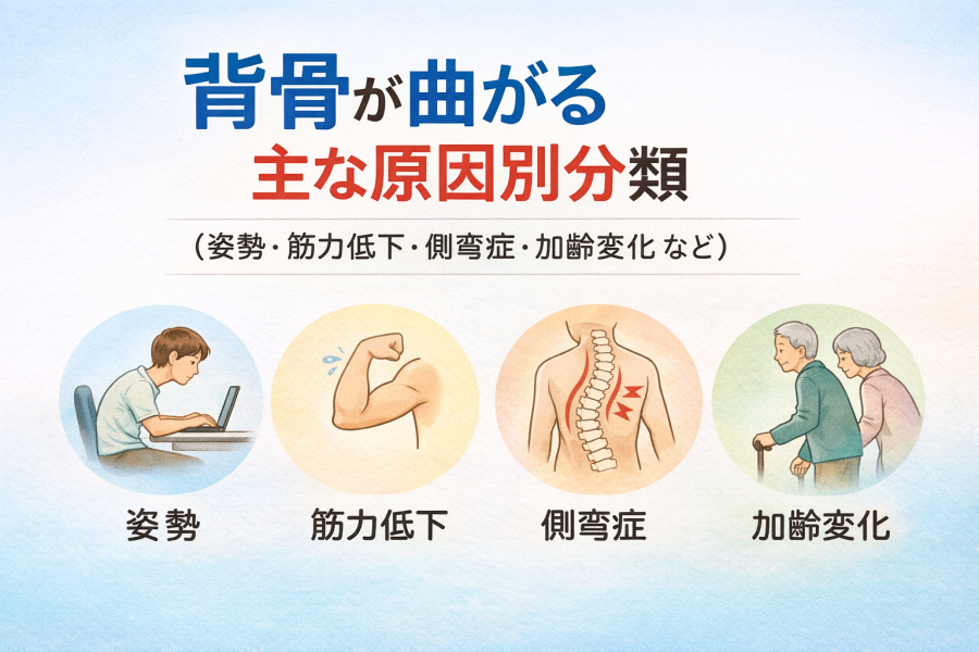背骨が曲がる主な原因別分類(姿勢・筋力低下・側弯症・加齢変化など)