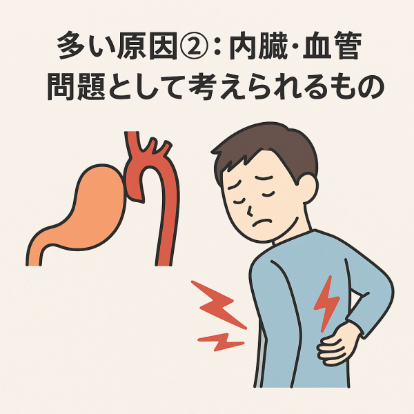 背骨の真ん中あたりがズーンと重く痛む場合、内臓由来の関連痛が関係しているケースも考えられています。