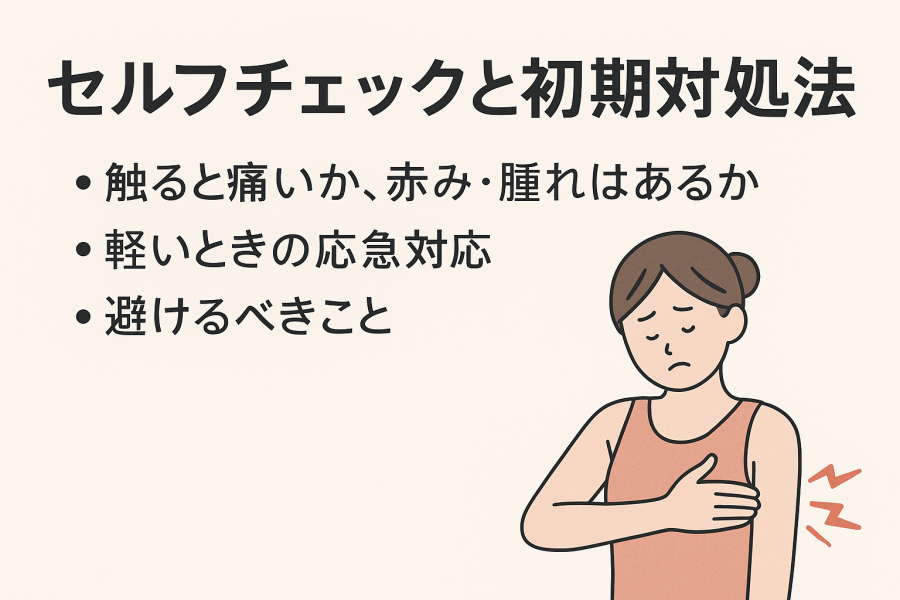 - 自分でできるチェック(触ると痛いか、赤み・腫れはあるか)
