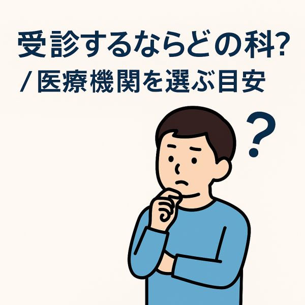 - 症状別に「泌尿器科」「消化器内科」「皮膚科・神経内科」「整形外科/リハビリ科」など、受診すべき科の目安