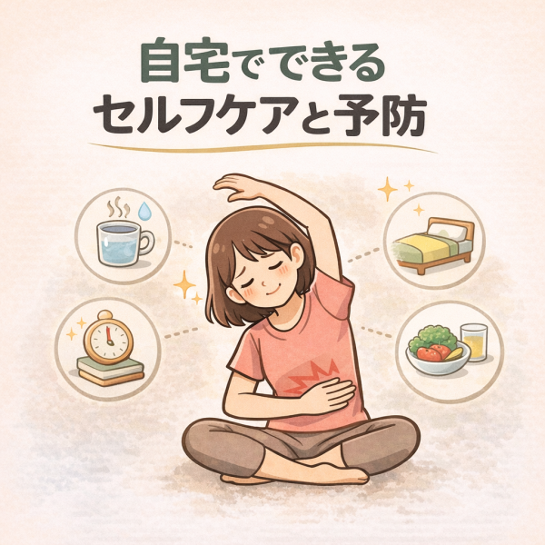 左脇腹の痛みが軽い場合、「まずは家で様子を見たい」と思う方も多いですよね。実際、生活習慣や筋肉の負担が関係しているケースでは、日常の過ごし方を少し見直すだけで楽になることもあると言われています。ここでは、無理なくできるセルフケアと、再発を防ぐためのポイントをまとめていきます。