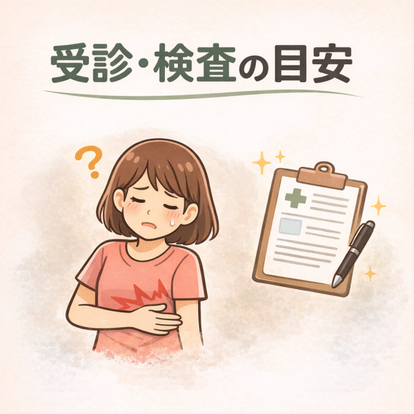 ここで大事なのは、痛みの強さ・続く時間・一緒に出ている症状を冷静に確認することです。「これ、放っておいて大丈夫かな?」と迷ったときの判断材料を整理しておきましょう。