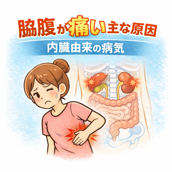 そんなときに気になるのが、内臓が関係しているケースですよね。実は、脇腹には腎臓や腸などの臓器が位置しているため、内臓由来の不調が痛みとして現れることもあると言われています。ここでは、比較的多く見られる原因を分けて整理していきます。