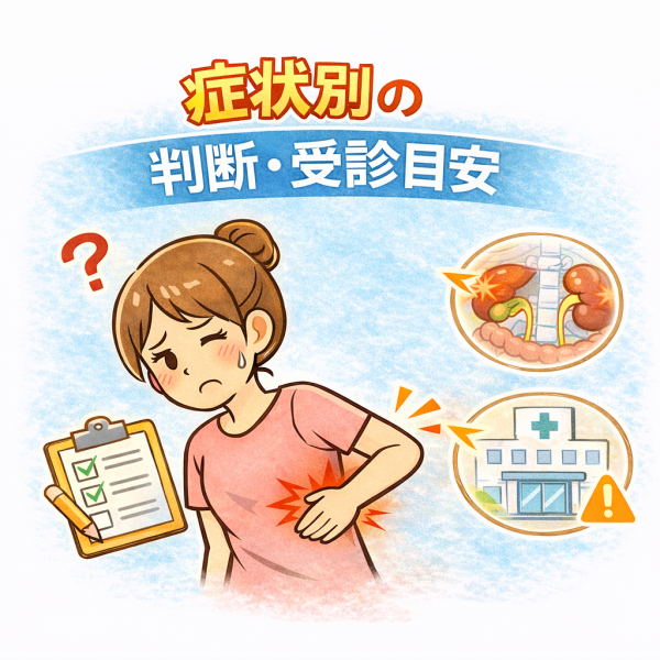 そう迷う方はとても多いです。脇腹が痛い場合、緊急性が高い症状と、日常的によく見られる痛みとで、判断の考え方が少し異なると言われています。ここでは、見逃したくないサインと、来院先の選び方を整理します。