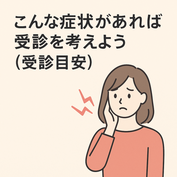 ここでは、来院を考える一つの目安として、症状別の考え方を整理します。