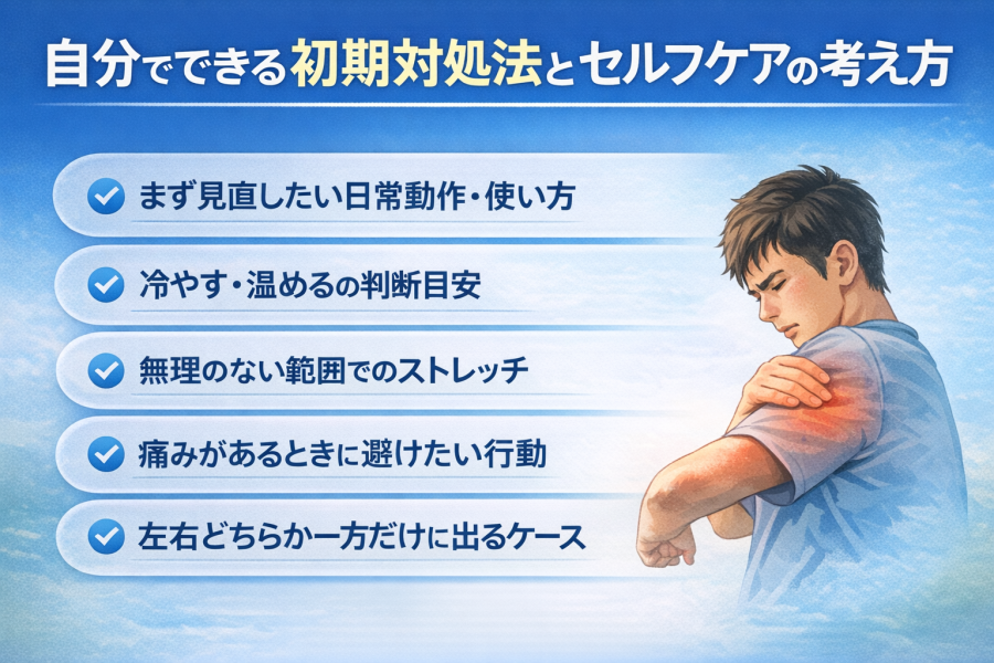 そんな声に多いのが、日常動作の見直し+無理をしないセルフケアが基本だと言われています。ここでは、はじめに意識したい考え方を整理します。