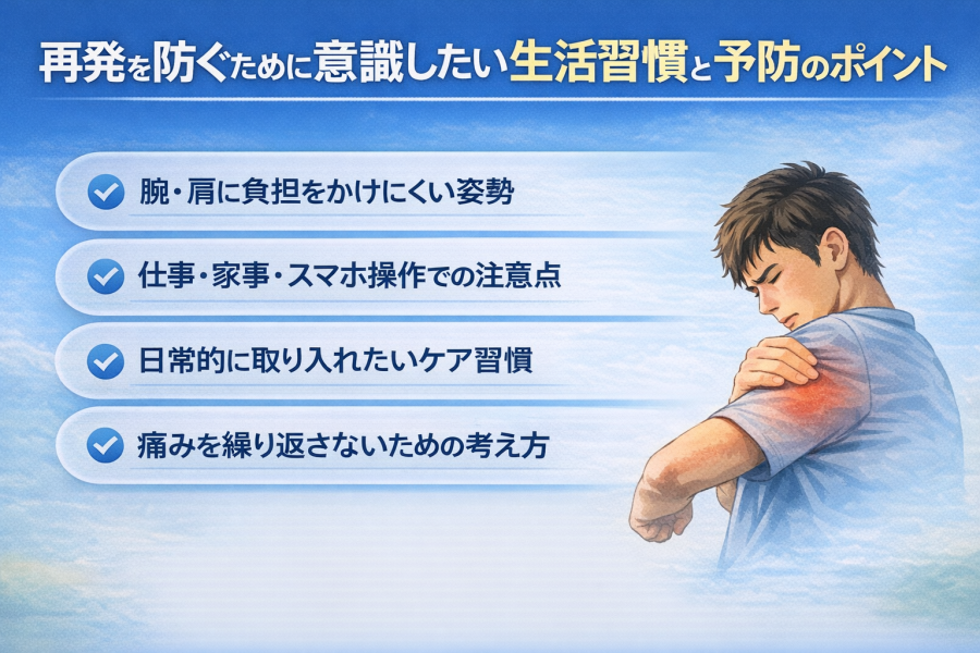 「特別なことはしてないんだけどな…」と思っていても、スマホ操作やパソコン作業、家事の動きなどで腕を酷使していることは少なくないようです。