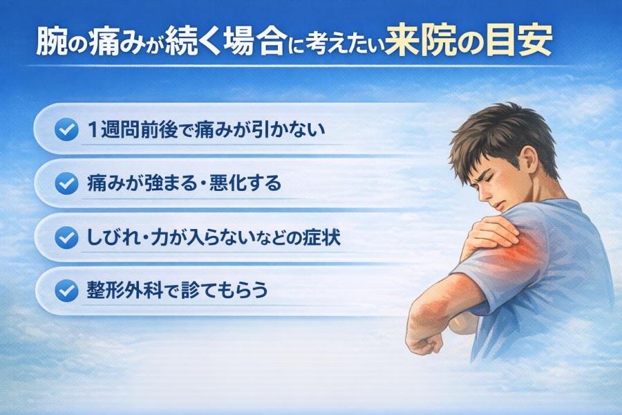 「腕が痛い 肘から上の違和感、まだ様子見でいいのかな?」