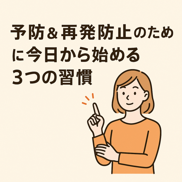 といった簡単なケアでもよいと言われており、体が休まる時間をつくることが再発防止のカギになると紹介されています。