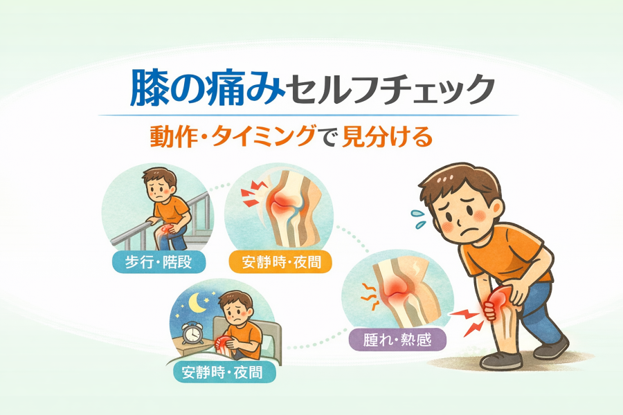 膝の痛みセルフチェック|動作・タイミングで見分ける