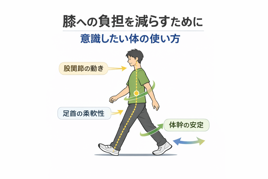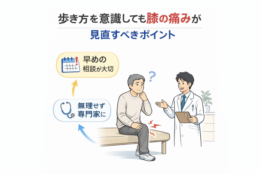 歩き方を意識しても痛みが続く場合、膝以外の動きや体の使い方に問題が残っている可能性もあると言われています。無理に我慢することはおすすめされていません。