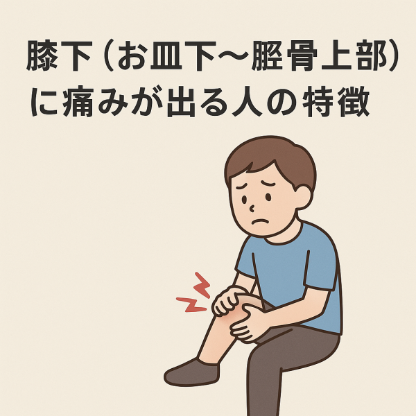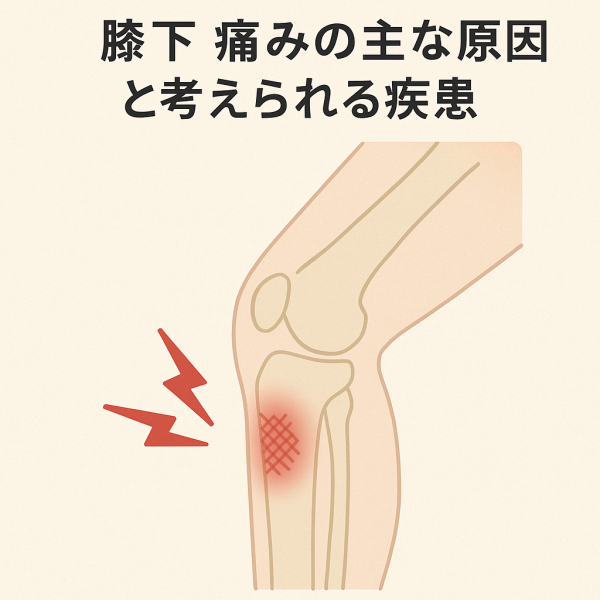 - 検索意図整理:「膝下が痛いけど原因が分からない」「運動するとお皿の下が痛む」「階段・立ち上がりで膝下に違和感」