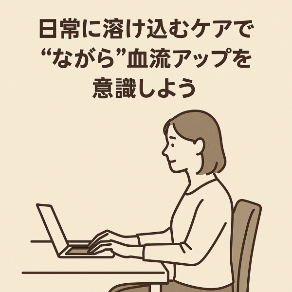 - 姿勢改善:猫背や長時間座位は血流を妨げるので、こまめに立つ・伸ばす