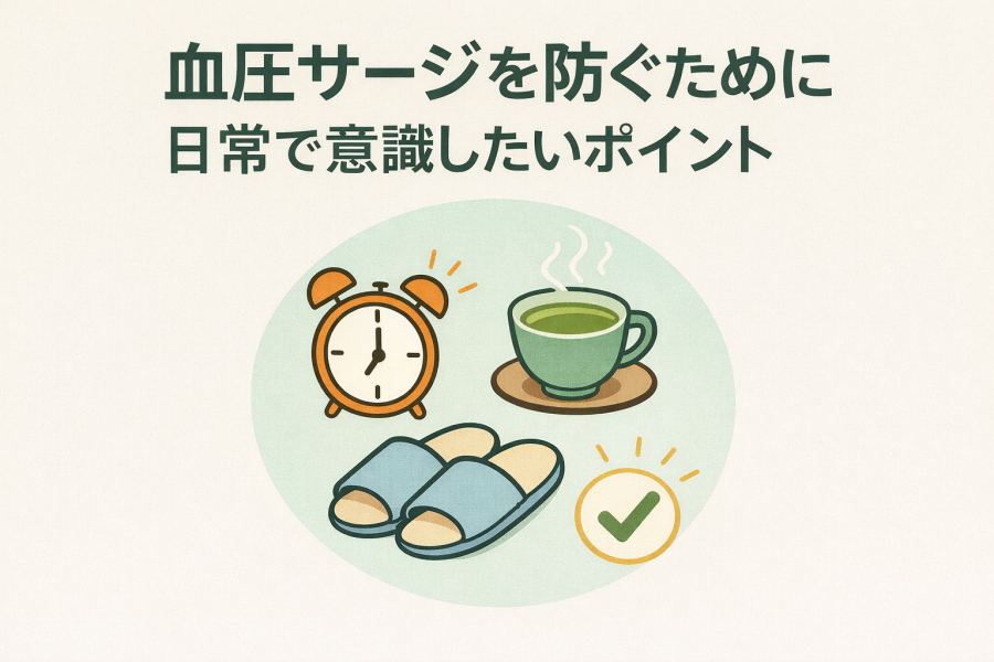 起床時はゆっくり動く、寒い場所では急に体を冷やさないなど、小さな工夫が血圧変動を抑えるために役立つと言われています。