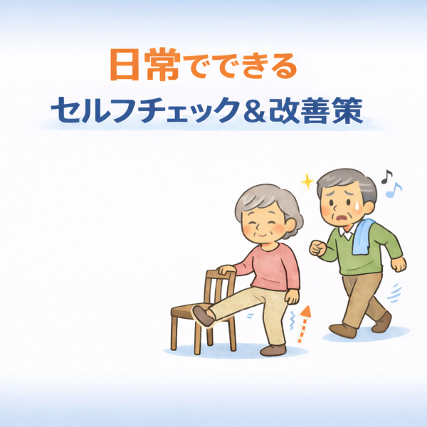 たとえば、「椅子から立ち上がるとき、足に力が入りづらくないか」「片足立ちを10秒ほど保てるか」といった動作です。左右で明らかな差があったり、途中でふらつく場合は、足の使い方やバランスが乱れている可能性があると言われています。