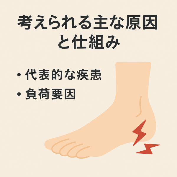さらに、運動不足や加齢による筋力の低下も足の支えを弱くし、関節や腱に負担をかけてしまうとされています。毎日の積み重ねが痛みの“土台”を作ってしまうこともあるのです。