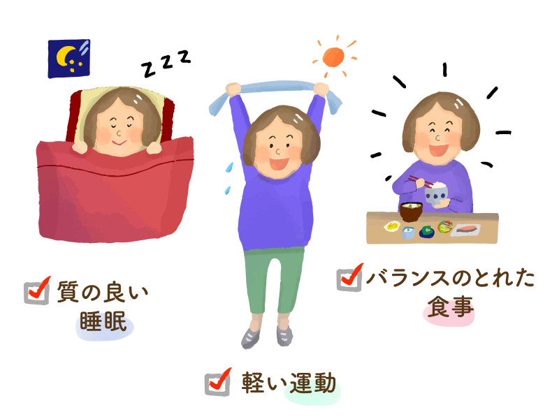 趣味の時間を持つ、リラックスできる環境を整えるなど、ストレスを溜め込まない工夫が大切です。