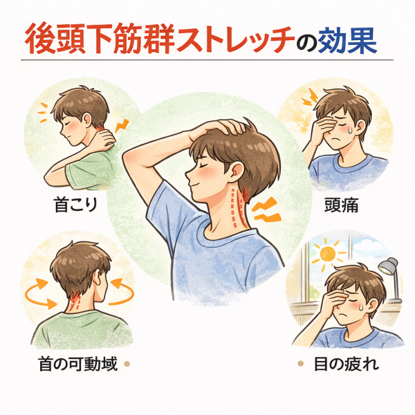 とくにデスクワークやスマホ作業が多い人は、この筋肉が緊張しやすいと言われているため、後頭下筋群ストレッチを取り入れる人も増えているようです。