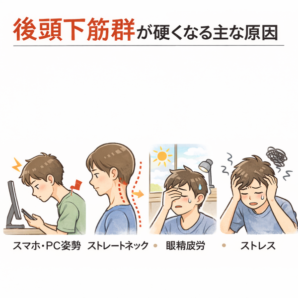 後頭下筋群が硬くなる主な原因