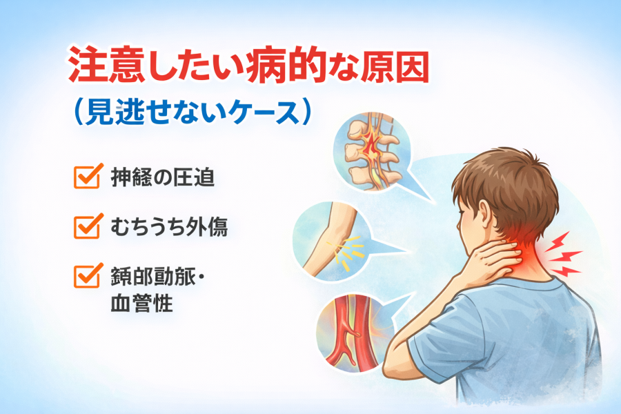 そう思って様子を見る人も多いですが、日常のこりとは違う原因が関係しているケースもあると言われています。ここでは、見逃さないために知っておきたい代表的な病的要因を整理します。