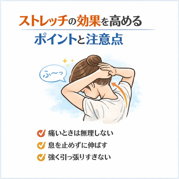 「なんとなくやる」から「意味を理解してやる」に変わるだけでも、体への負担は変わってきます。ここでは、効果を高めるためのポイントと注意点をわかりやすく整理していきます。