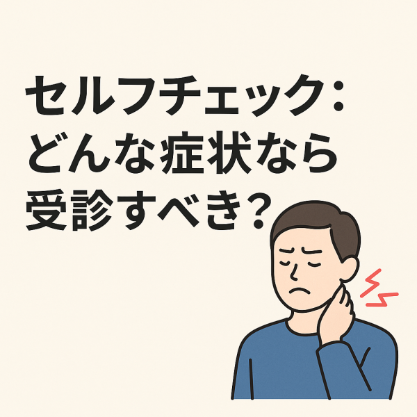 こうした症状が当てはまるかどうかをセルフチェックすることで、「様子を見ても大丈夫か」「早めに来院した方がよいか」の目安になります。無理に我慢してしまうと改善が遅れることもあるため、心配な時は早めに専門機関に相談するのがおすすめです。