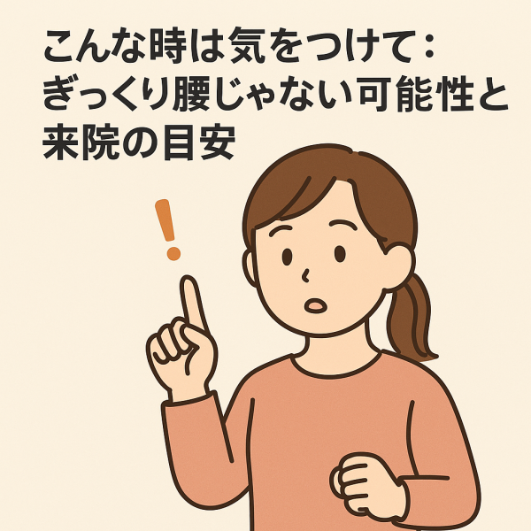 - 加齢や既往歴(慢性腰痛、椎間板への負担など)がある場合の注意点 — ぎっくり腰ではなく他疾患の可能性もある点