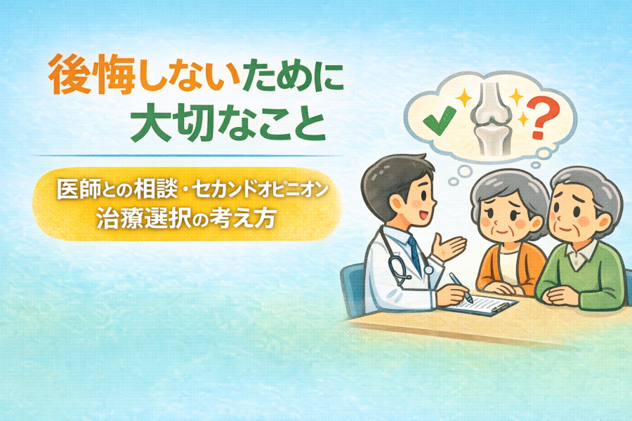 変形性膝関節症の選択肢は一つではありません。だからこそ、「よくわからないまま決めてしまう」ことが後悔につながりやすいと言われています。疑問や不安は遠慮せず伝えることが大切です。