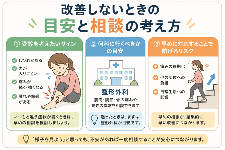 「痛み+別の違和感」が出ている場合は、早めに専門家へ相談することが大切とされています。