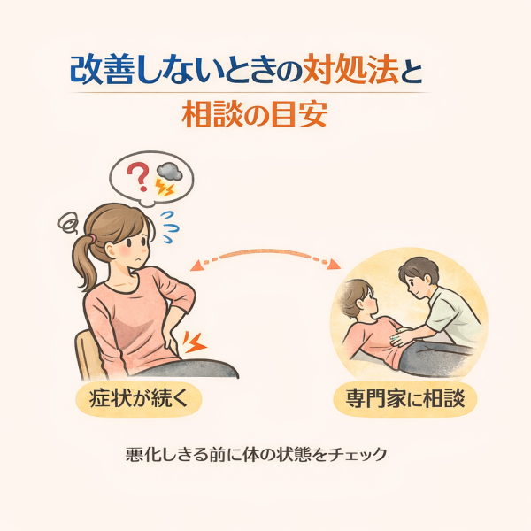 また、「少し楽になったけどまた戻る」という状態を繰り返す場合も、根本的なバランスが整っていない可能性があると考えられています。