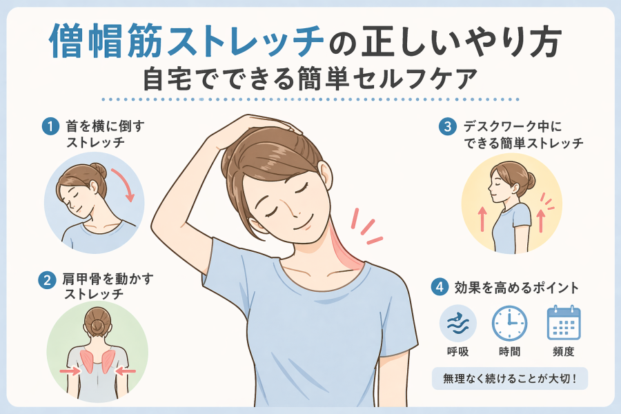 僧帽筋ストレッチの正しいやり方|自宅でできる簡単セルフケア