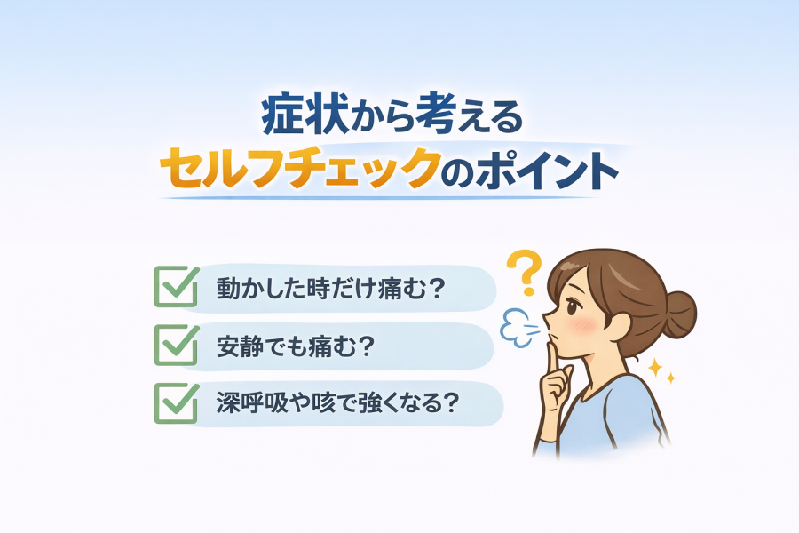 息を吸うと背中が痛いとき、多くの方がここで迷います。いきなり原因を決めつけるのではなく、まずは今の症状を整理してみることが大切だと言われています。ここでは、自分でも確認しやすいセルフチェックの視点を紹介します。