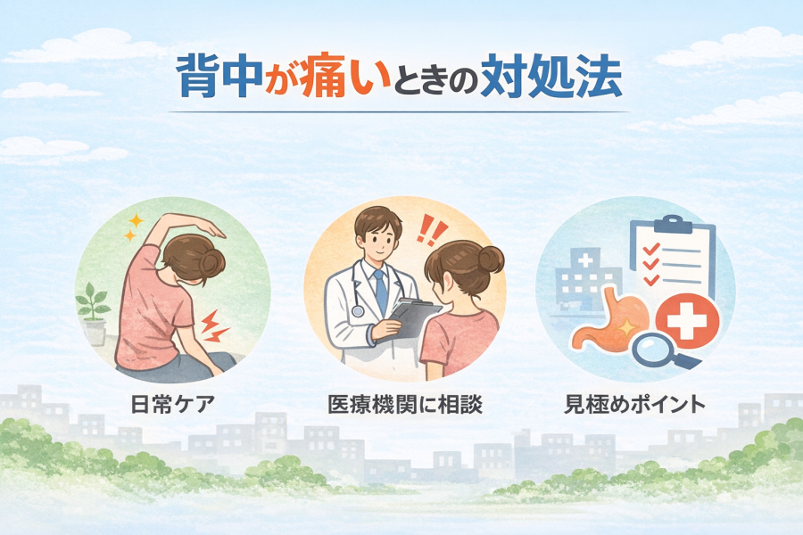 「背中が痛いけど、どうすればいいの?」と迷う方は少なくありません。実際には、痛みの原因によって対応が変わると言われています。まずは自宅で様子を見られるケースなのか、それとも早めに医療機関へ来院した方がよいのかを見極めることが大切だと紹介されています。