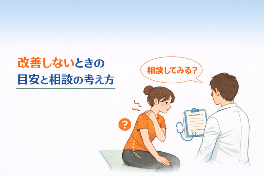 「そのうち良くなるだろう」と放置してしまうと、姿勢のクセが定着してしまうこともあります。そうなる前に、専門家に相談するという選択肢を持っておくと安心です。
