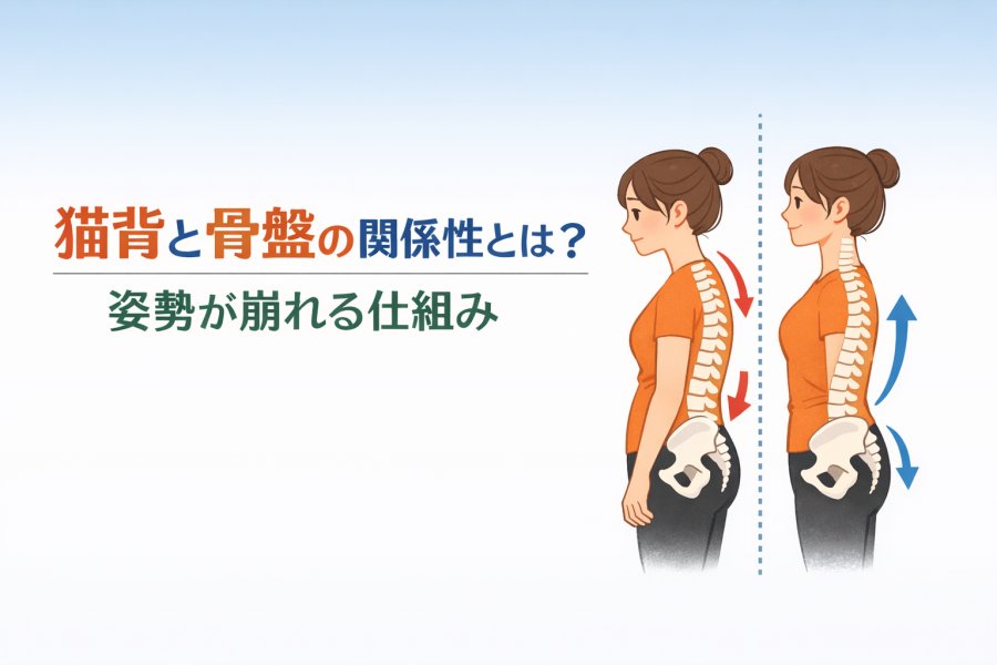 つまり、猫背は単に「背中の問題」ではなく、「骨盤の状態が影響している姿勢の変化」と考えると理解しやすいです。