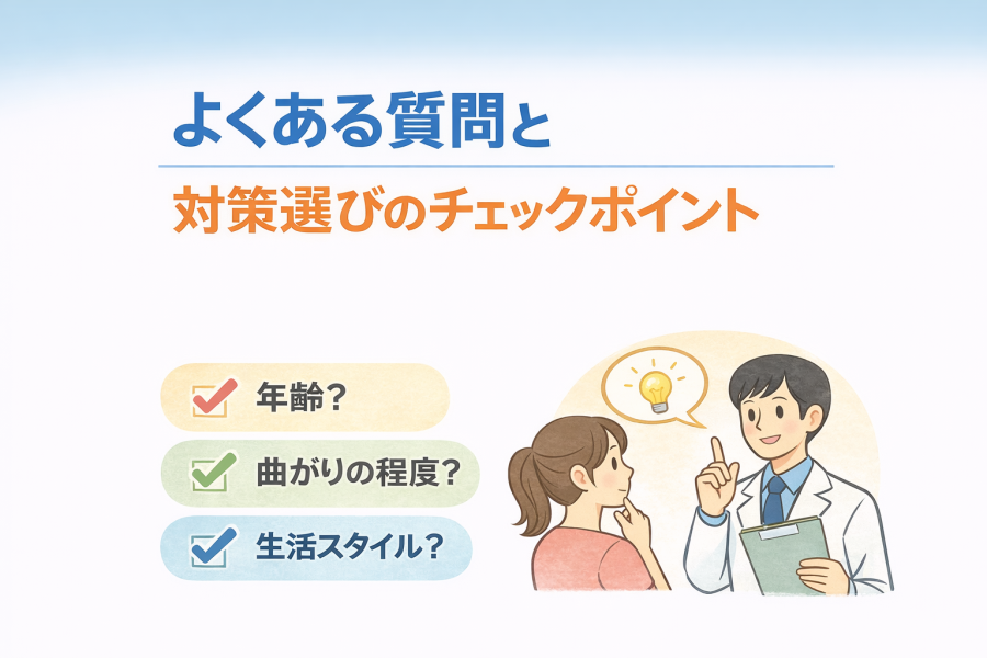 側湾症の対策を考えるとき、「何から始めればいいのか分からない」と感じる方は多いようです。そこで、選ぶ際のポイントを整理しておきます。